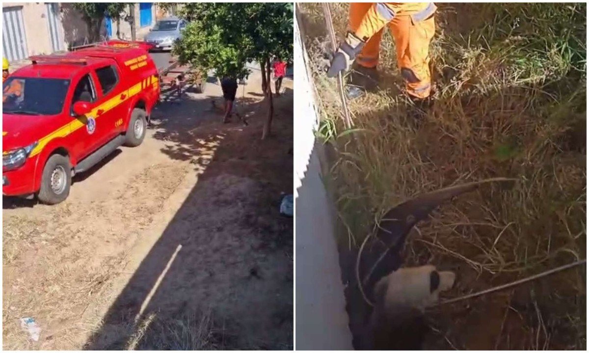Segundo a corporação, o animal silvestre estava no interior de uma residência abandonada e foi avistado por moradores da vizinhança, que acionaram os bombeiros.