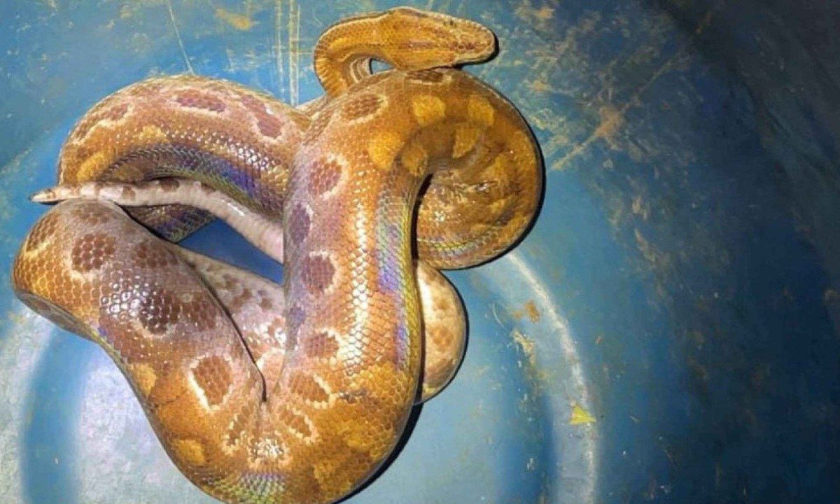 Uma serpente que caça e depois esmaga suas presas se enrolando nelas (constritora) foi encontrada em uma residência de Pains (MG), no Centro-Oeste do estado, e foi capturada pelo Corpo de Bombeiros (CBMMG).