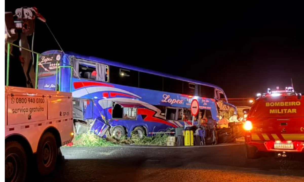 Ônibus que bateu em carreta levava fiéis em excursão religiosa