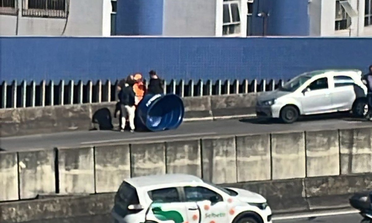 O Corpo de Bombeiros informou que, no momento do acidente, as três faixas, nos dois sentidos do viaduto, foram interditadas. Por volta das 15h, havia duas interditadas no sentido Cidade Nova e uma liberada no sentido Centro.
