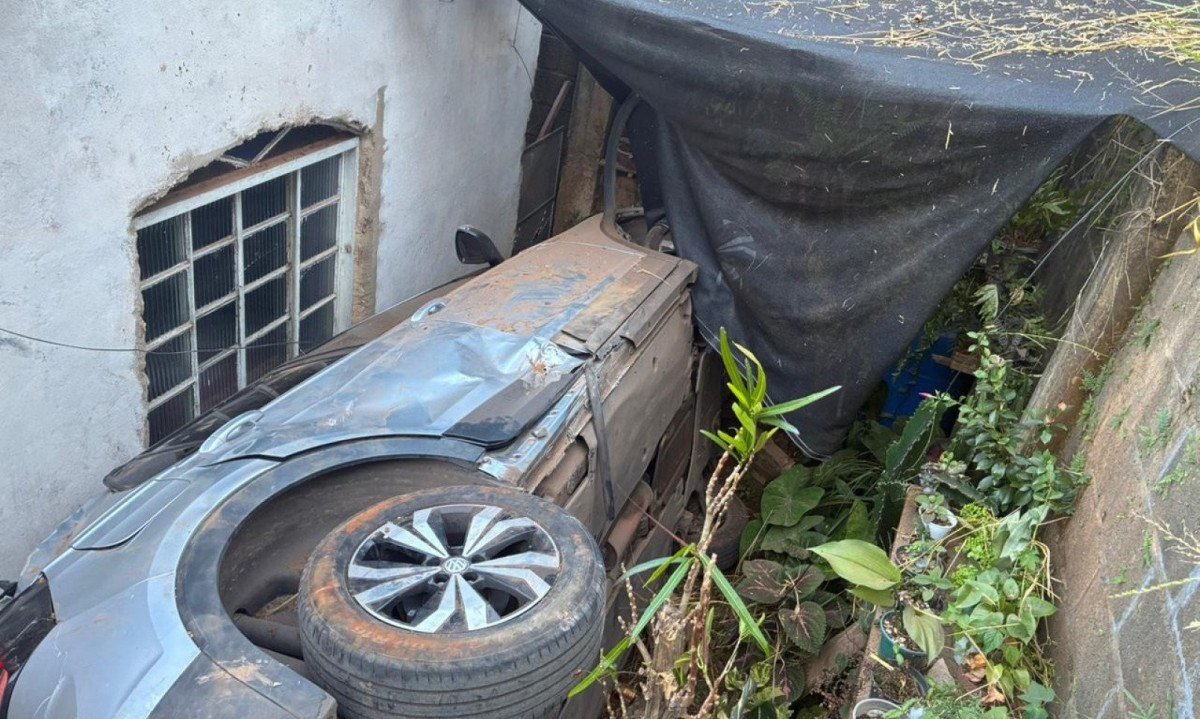 Uma motorista perdeu o controle do carro, desceu um barranco e o veículo ficou preso entre duas residências na tarde desta terça-feira (28/4), no Bairro Adelmolândia, em Sabará (MG), na Região Metropolitana de Belo Horizonte.