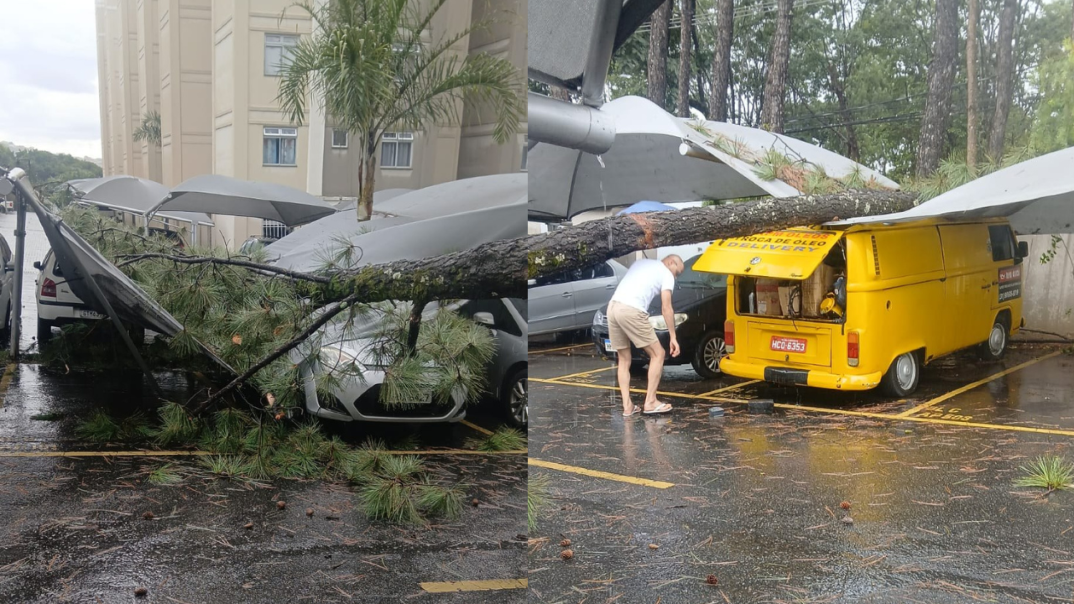 Imagens registradas no momento mostram que chovia quando a árvore caiu, o que pode ter contribuído para o incidente.