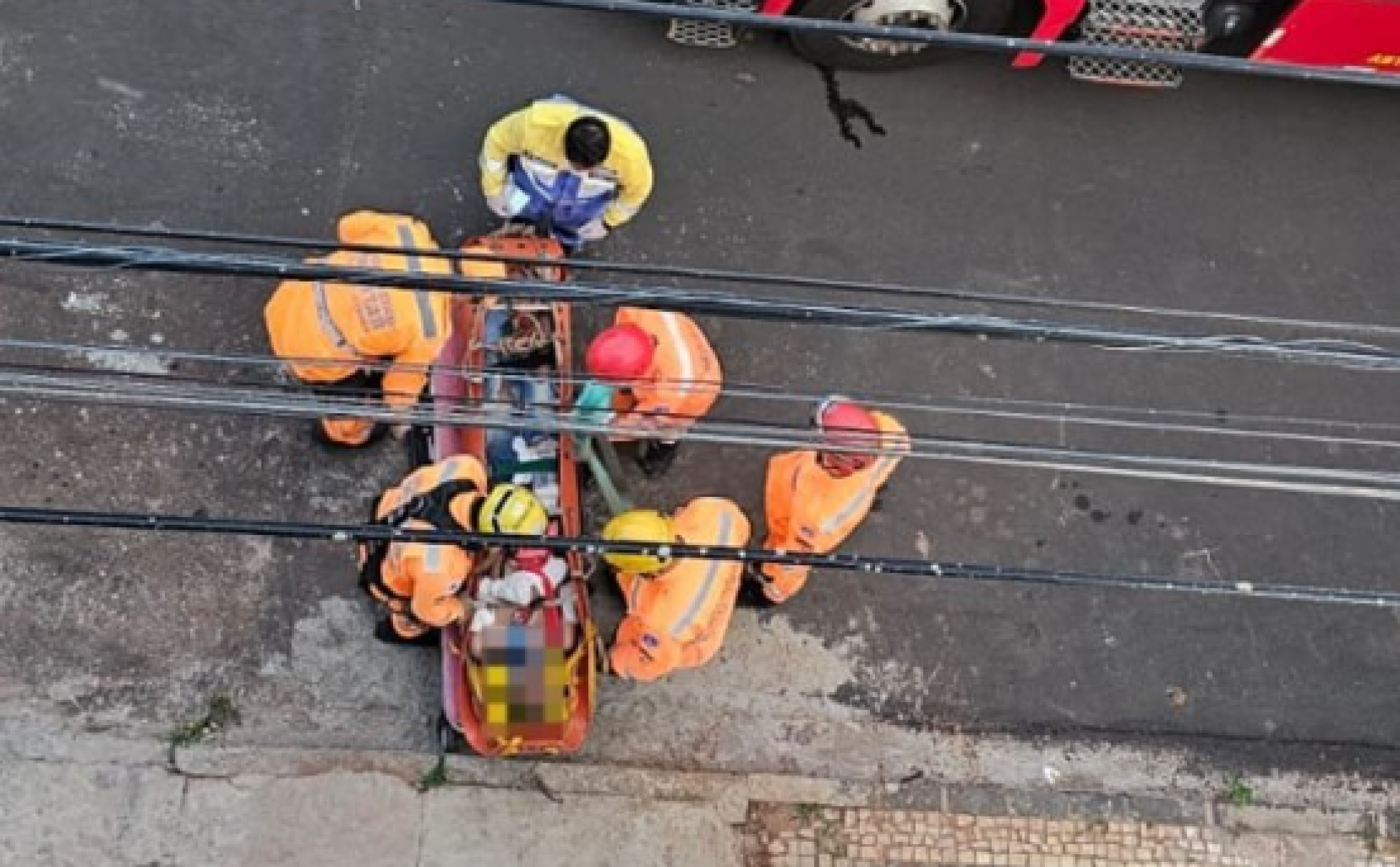 Devido à altura e ao acesso difícil até o local, os militares utilizaram técnicas de salvamento em altura para retirar o trabalhador com segurança, usando uma maca especial até o pavimento inferior.