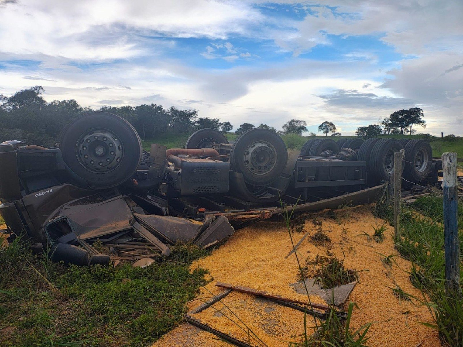 Uma carreta carregada de milho tombou na tarde dessa terça-feira (7/4) na MG-223, próximo a Tupaciguara (MG), no Triângulo. O motorista, de 43 anos, e o passageiro, de 39, morreram.