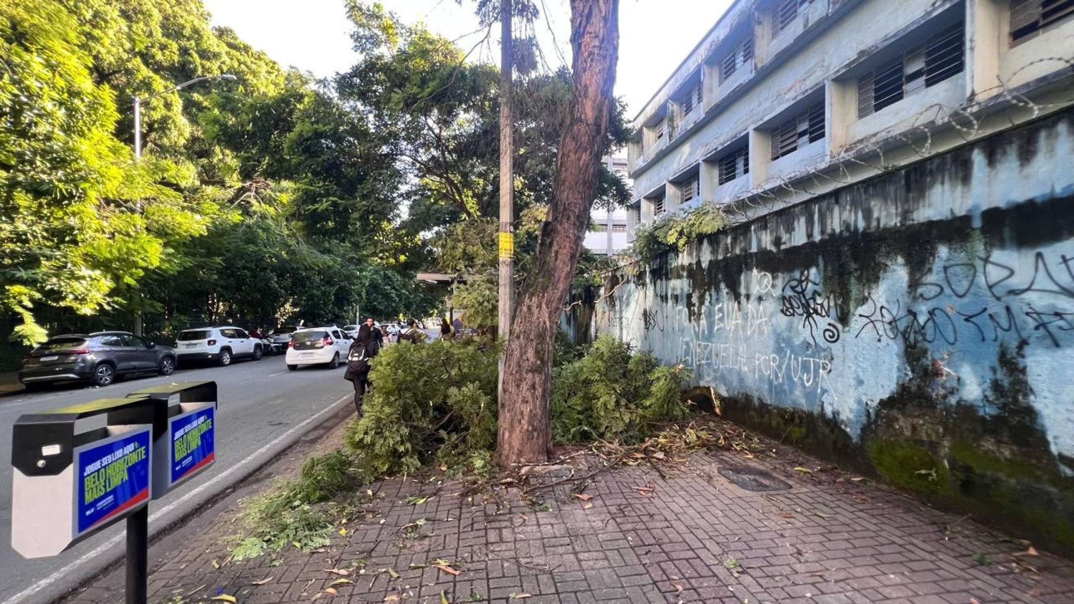 Segundo o Corpo de Bombeiros, ao menos 15 árvores caíram em diferentes pontos da cidade, concentradas principalmente no Centro-Sul. Na Rua Goitacazes, próximo à Praça Raul Soares, uma árvore de grande porte atingiu dois carros. Uma mulher grávida de oito meses estava dentro de um dos veículos, mas não se feriu.