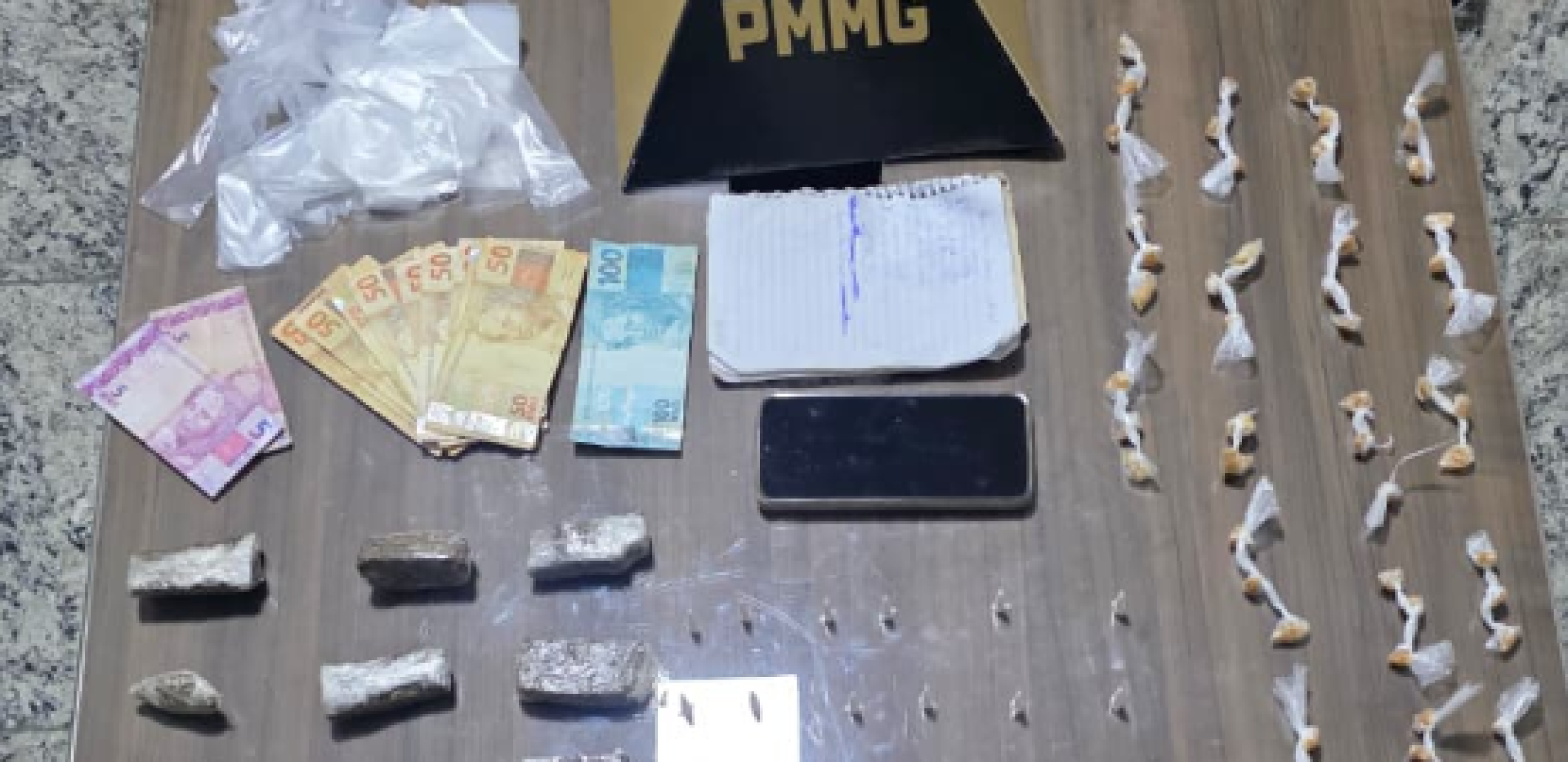 Com ele, foram encontrados tabletes de maconha, porções de crack, pinos de cocaína, dinheiro e um celular. Em seguida, o próprio suspeito indicou outros pontos onde havia mais entorpecentes escondidos, incluindo uma sacola pendurada em uma árvore do cemitério e materiais dentro de uma panela de pressão em casa próxima.