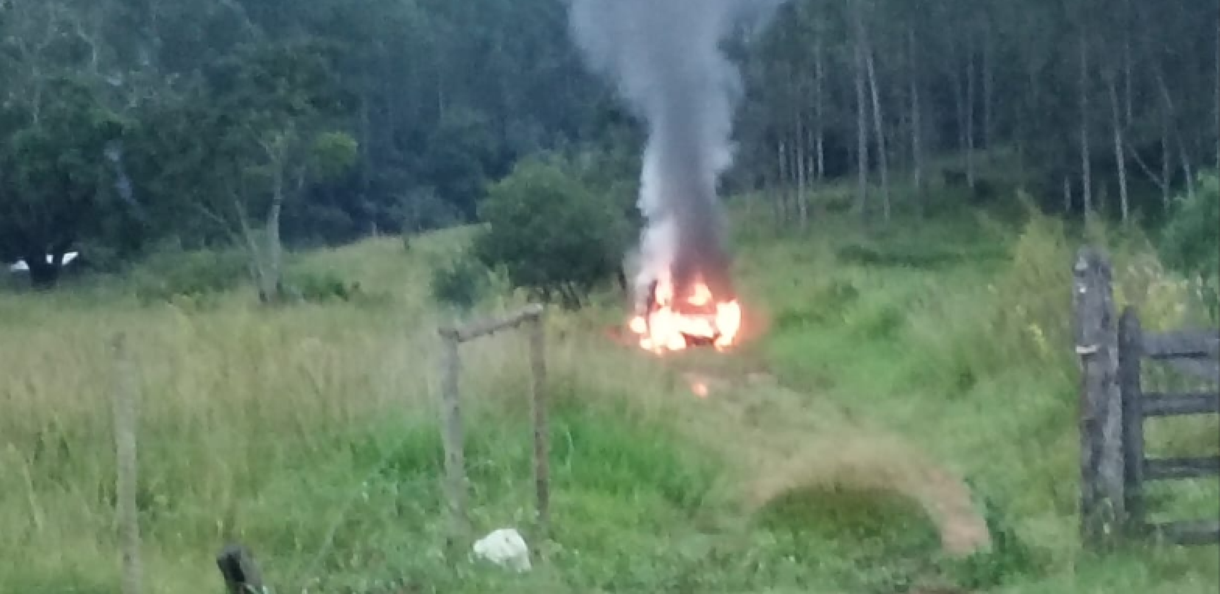 Um dos veículos usados pelos criminosos no assalto a um banco em Guidoval (MG), na Zona da Mata, foi localizado a aproximadamente 25 quilômetros do local do crime. O carro, uma Fiorino, estava incendiado na zona rural de Rodeiro, poucas horas após a ação, registrada na madrugada desta sexta-feira (10/4).