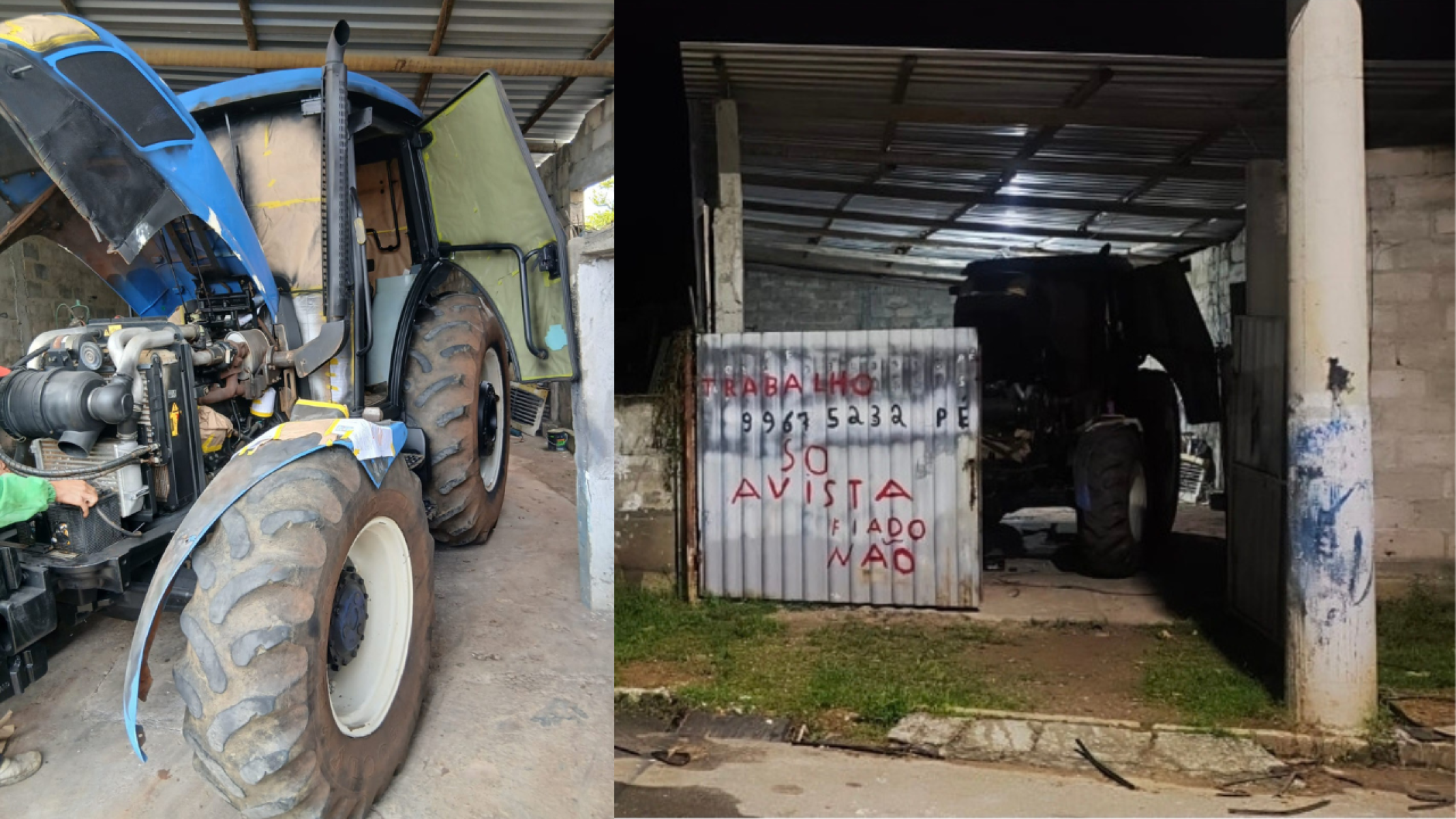 Durante a fiscalização, os militares constataram que as numerações do chassi e do motor haviam sido raspadas, caracterizando adulteração de sinal identificador. Após consulta, foi confirmado que o trator era produto de furto.