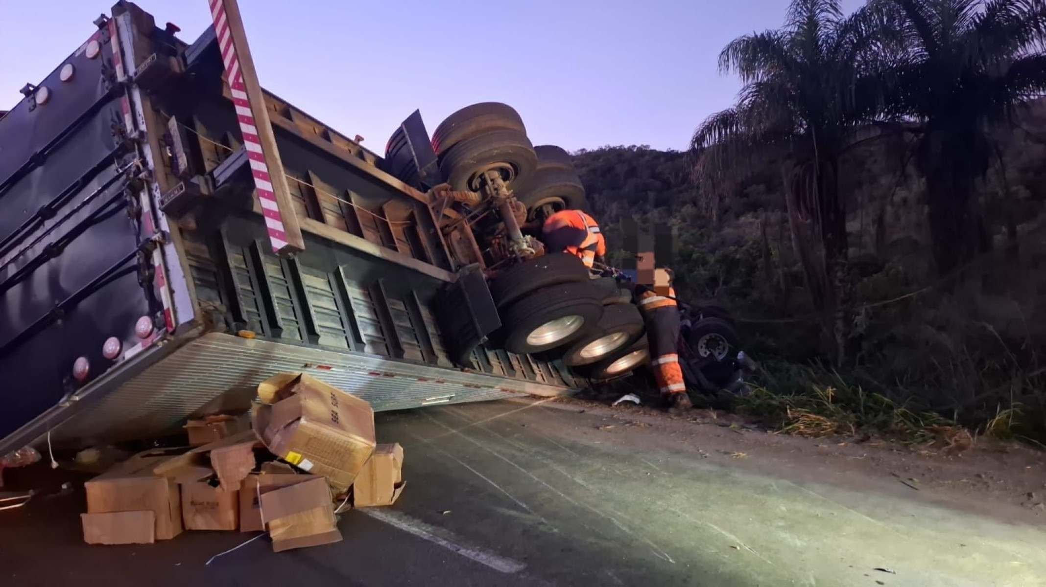 A véspera do feriado do Dia do Trabalhador começou com transtornos na BR-381. Um caminhão com carga de roupas tombou na madrugada desta quinta-feira (30/4), por volta das 4h30, no Bairro Bom Destino, em Santa Luzia, na Região Metropolitana de Belo Horizonte.