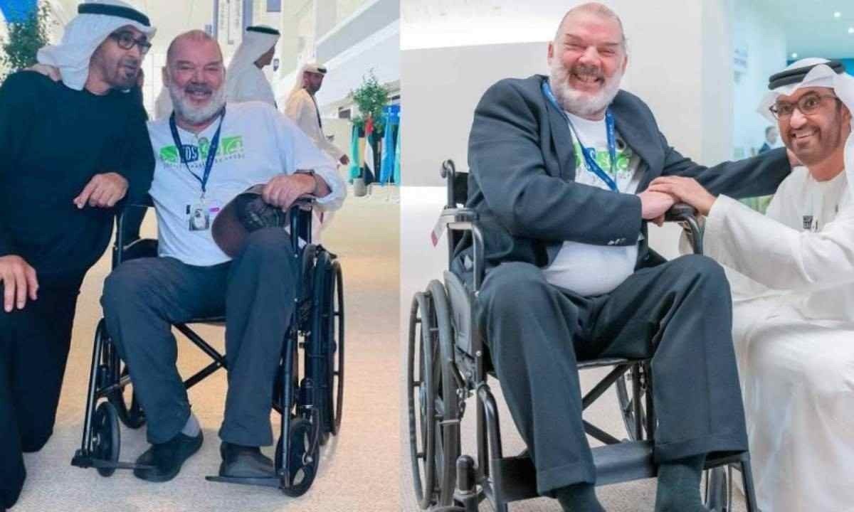 Com viagem paga pelo sultão Al Jaber, que preside a conferência do clima e a premiação, o brasileiro viveu um momento único em Dubai. Por estar em uma cadeira de rodas devido a uma doença autoimune, ele teve o xeque dos Emirados Árabes, Mohamed bin Zayed Al Nahyan, e o sultão ajoelhados aos seus pés para uma foto.