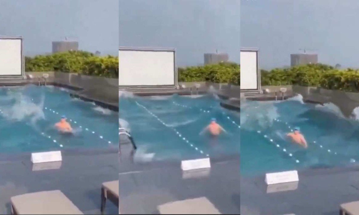 Turista estava na piscina na cobertura de um hotel em Taipei, em Taiwan, quando o tremor de mais de 7 graus de magnitude aconteceu
