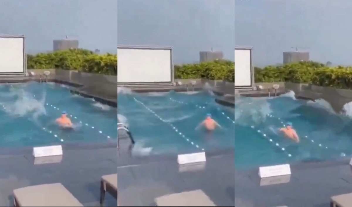 Um vídeo impressionante de um turista dentro da piscina de um hotel em Taipei, em Taiwan, quando um terremoto de mais de 7 graus de magnitude atingiu o local, impactou as redes sociais nesta quarta-feira (3/4). Enquanto a água da piscina espirra de um lado para o outro, o homem permanece notavelmente calmo durante o tremor.