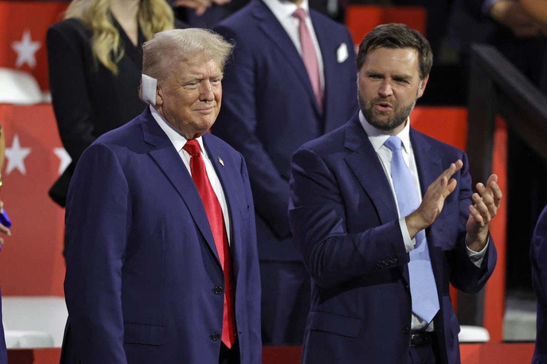 Nesta segunda, Trump subiu ao palco da Convenção Nacional do Partido Republicano, ao lado do senador J.D. Vance, seu vice na chapa, na disputa eleitoral contra o democrata Joe Biden.