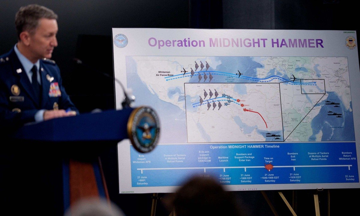 O general Dan Caine, chefe das forças do Estado-Maior, citou que a missão de ataque ao Irã, nomeada de Midnight hammer, foi confidencial. "Poucas pessoas em Washington sabiam dos detalhes do plano", frisou o militar. Ele também explicou que os ataques norte-americanos contaram com bombardeiros B-2 (capazes de transportar as cargas úteis mais pesadas dos Estados Unidos, incluindo a bomba antibunkers GBU-57) e mísseis lançados por submarinos.