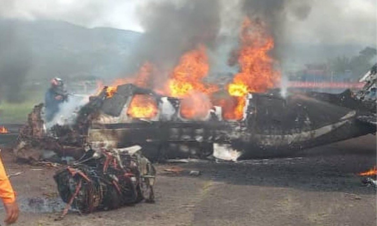 A aeronave perdeu o controle ao decolar, caiu e pegou fogo no Aeroporto de Paramillo, em San Cristóbal