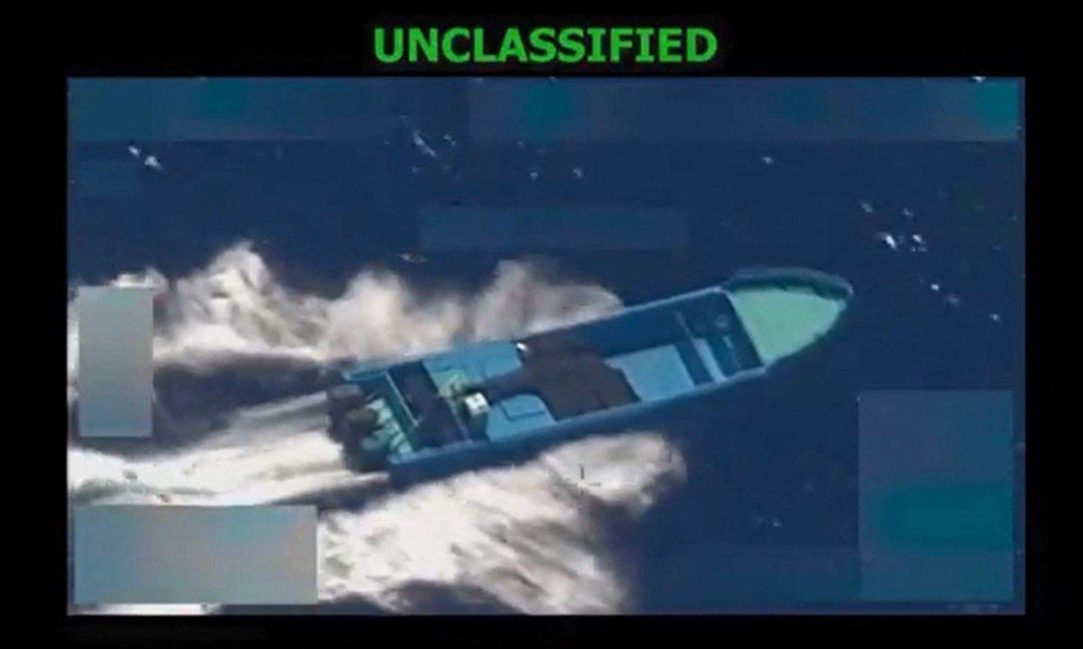 A mensagem de Hegseth foi acompanhada de um vídeo a cores no qual se vê uma lancha em alta velocidade em alto-mar, até ser totalmente destruída.