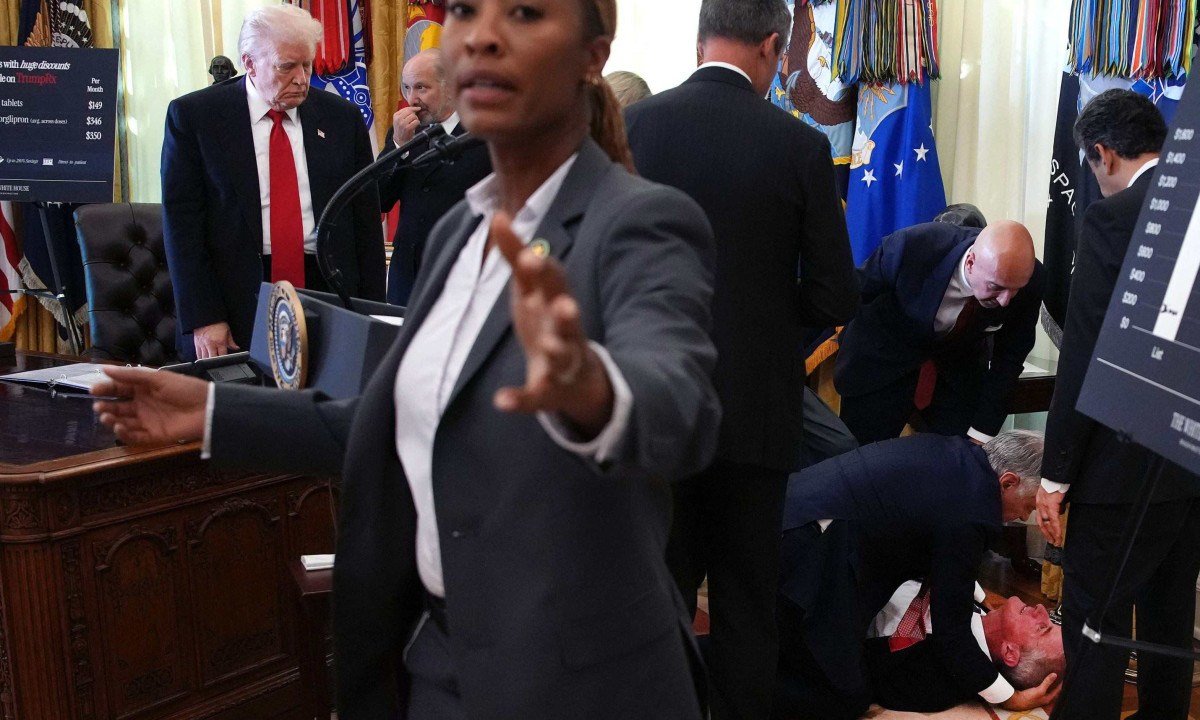 A transmissão da Fox News registrou o instante em que Gordon Findlay, representante da Novo Nordisk — fabricante dos remédios Ozempic, Rybelsus e Wegovy — perde os sentidos no Salão Oval. Convidados se apressam para socorrê-lo, enquanto Trump se levanta e observa a cena. Assessores da Casa Branca pediram que os jornalistas deixassem o recinto.
