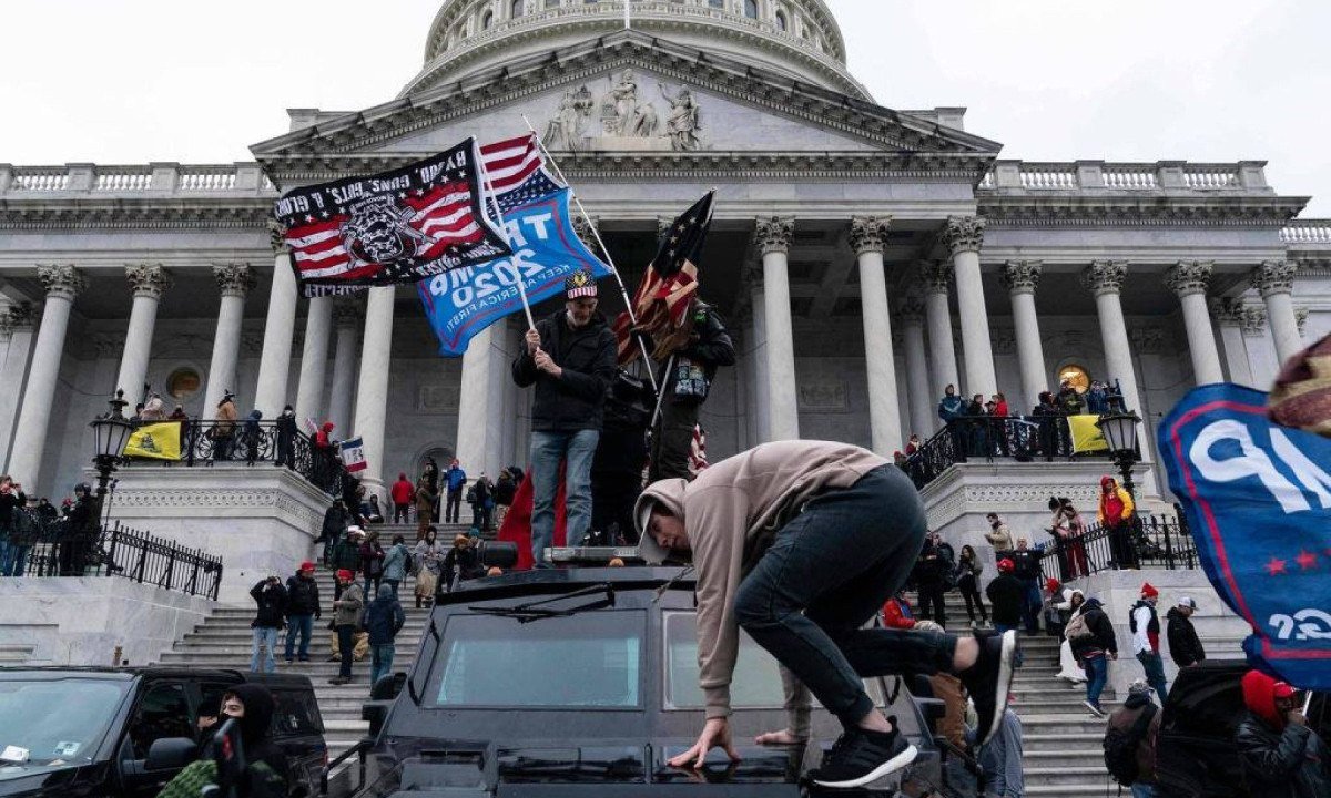 Centenas de seguidores de Trump invadiram o Capitólio em 6 de janeiro de 2021, em uma tentativa de impedir a certificação da vitória de seu oponente Joe Biden.