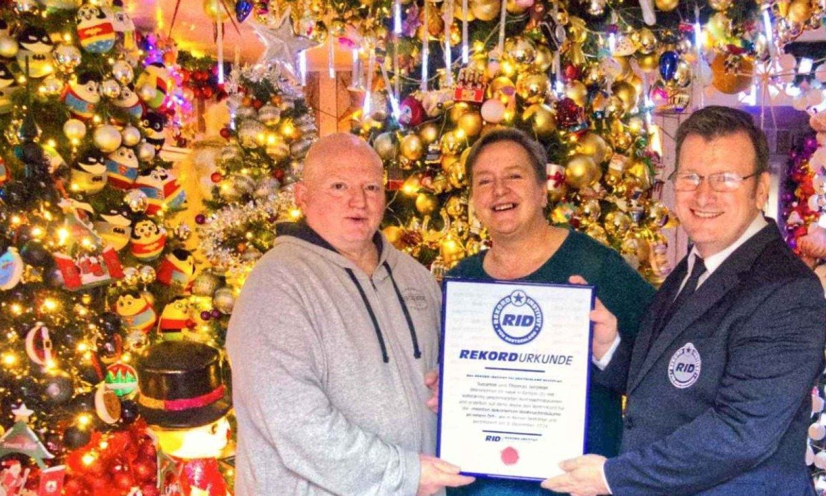 Um vídeo divulgado pelo Instituto Alemão de Recordes mostra como a casa reluz sob tantos enfeites, revelando a diversidade impressionante das decorações. De temas clássicos a combinações inusitadas, cada árvore conta uma história diferente dentro do universo cintilante criado pelo casal.