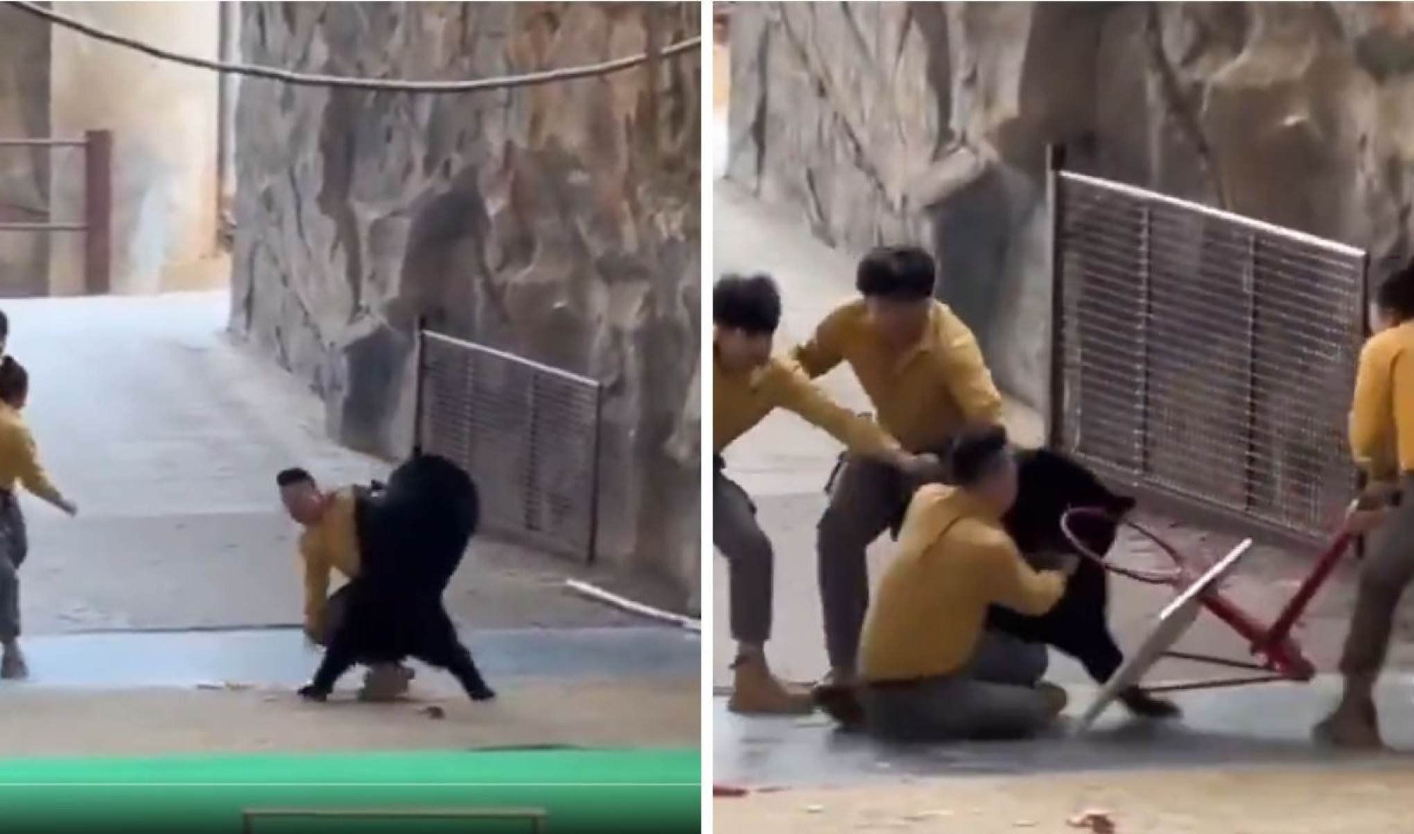 Um tratador do Parque Safari de Hangzhou, na província de Zhejiang, na China, foi atacado por um urso-negro durante um espetáculo no sábado (6/12). O episódio ocorreu no momento em que o animal era conduzido ao palco e, segundo a administração do parque, foi provocado pelo cheiro de um saco com cenouras e maçãs carregado pelo funcionário.