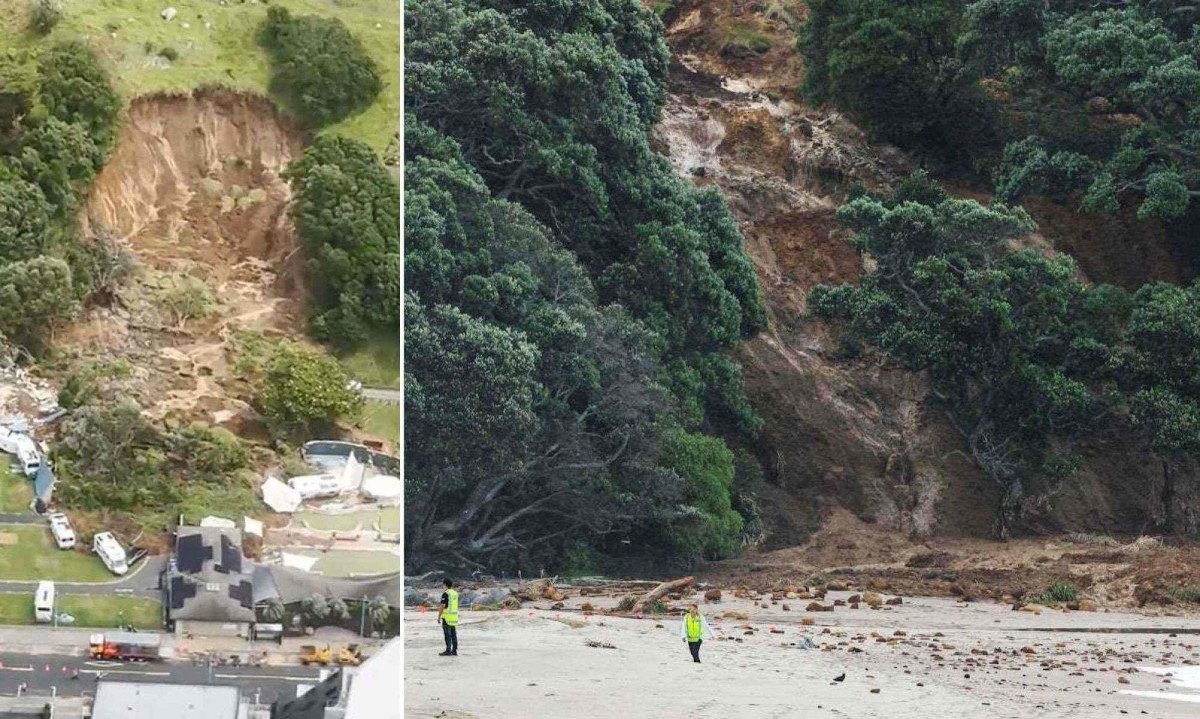 O deslizamento de terra alcançou vários trailers e os banheiros do acampamento, localizado na Ilha Norte, em uma área atingida por fortes chuvas.