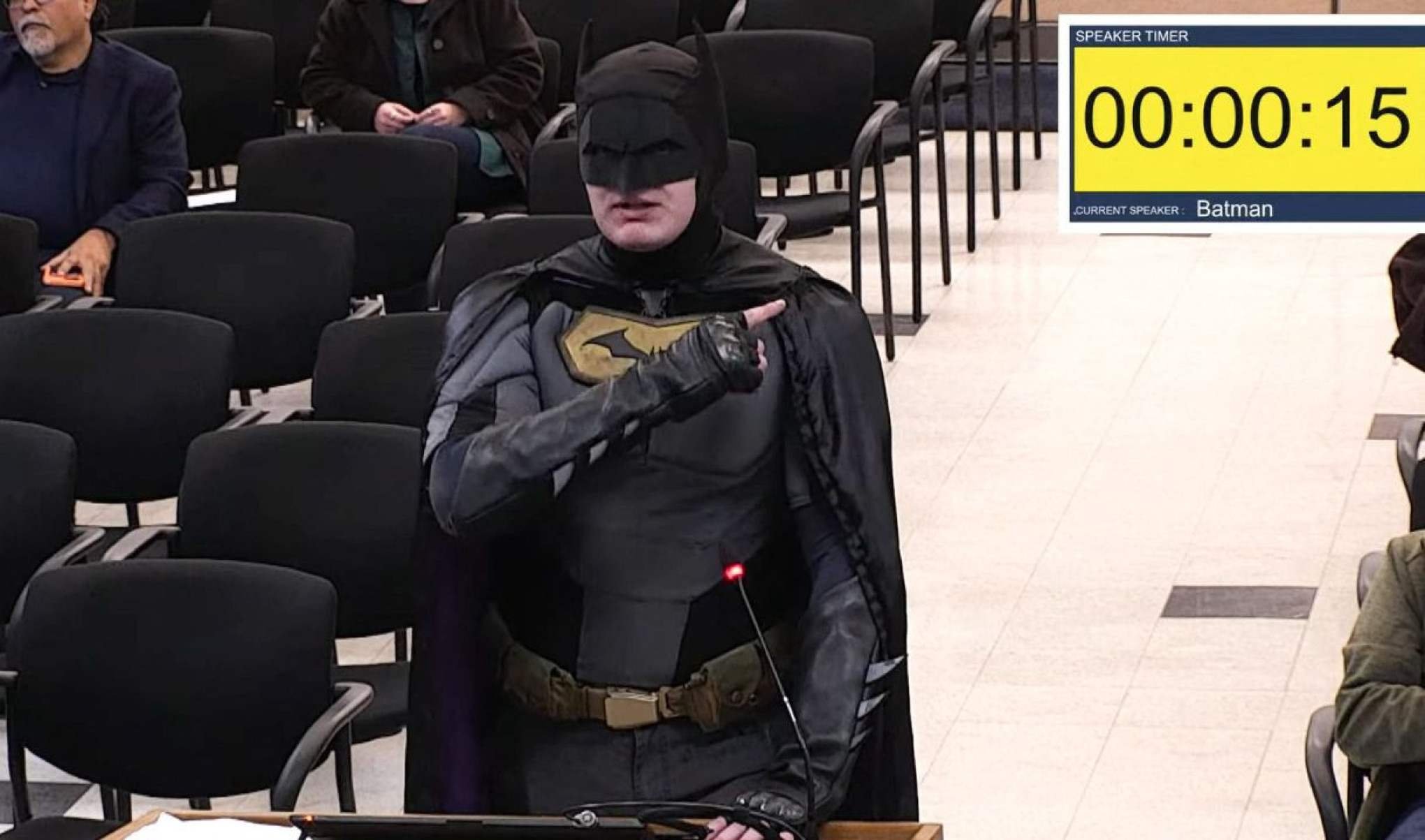 SÃO PAULO, SP (FOLHAPRESS) - Um homem não identificado vestido de Batman usou uma reunião do Conselho Municipal de Santa Clara, na Califórnia, na última terça-feira (27) para cobrar medidas da instituição contra o ICE, o Serviço de Imigração e Alfândega dos Estados Unidos, antes da realização do Super Bowl, marcado para o dia 8 de fevereiro na cidade.