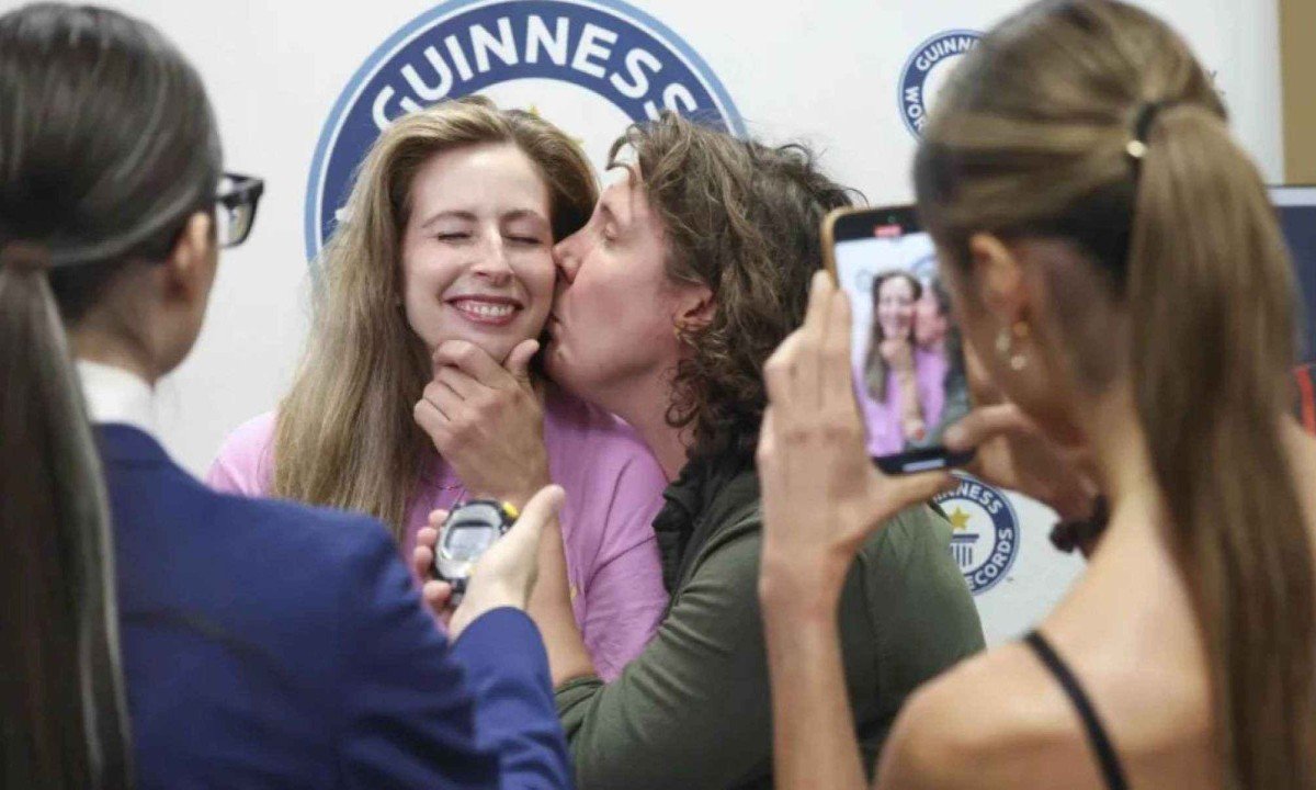 Sob supervisão oficial, dupla alcançou 146 beijos e transformou desafio curioso em fenômeno online