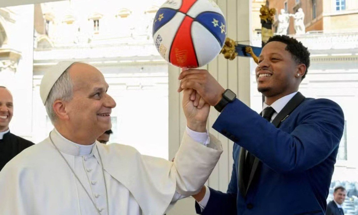 O Papa Leão XIV protagonizou um momento descontraído nessa quarta-feira (8/4) ao tentar equilibrar uma bola de basquete durante audiência na Praça de São Pedro, no Vaticano. A cena ocorreu após um encontro com o time Harlem Globetrotters, conhecido mundialmente por suas apresentações cheias de habilidade e humor.