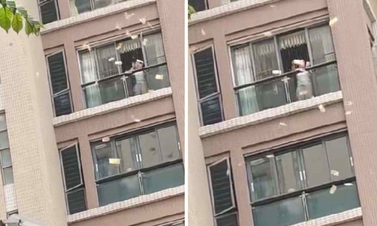 O caso aconteceu no distrito de Longhu, em um complexo residencial de alto padrão. Vídeos mostram a mulher arremessando repetidamente maços de dólares de Hong Kong, incluindo notas de HK$ 1.000 (cerca de R$ 640), que se espalharam pelo condomínio e pela rua.