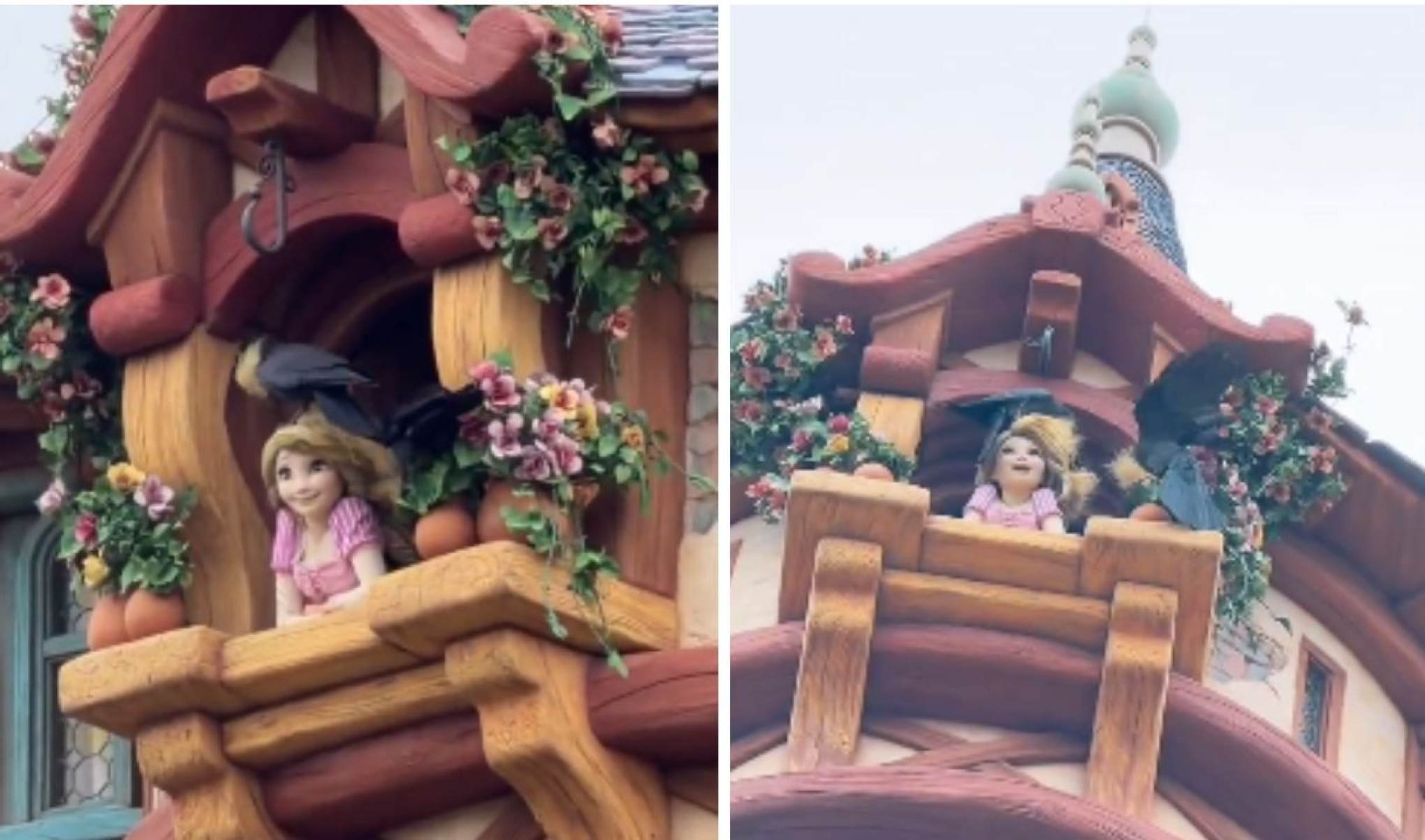 São tempos difíceis até para as princesas da Disney. Um momento inusitado registrado no Tokyo DisneySea, no Japão, nesta quarta-feira (1º/4) viralizou nas redes sociais ao mostrar dois corvos atacando Rapunzel. No vídeo, duas aves empoleiradas na torre da princesa puxam os longos cabelos da personagem.