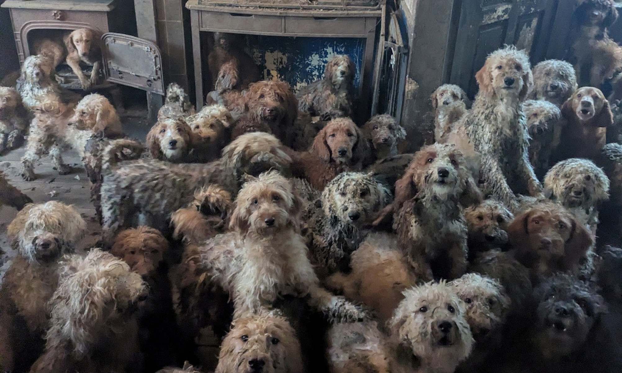 A RSPCA resgatou 87 dos 250 cachorros, enquanto a associação Dogs Trust cuidará do restante.