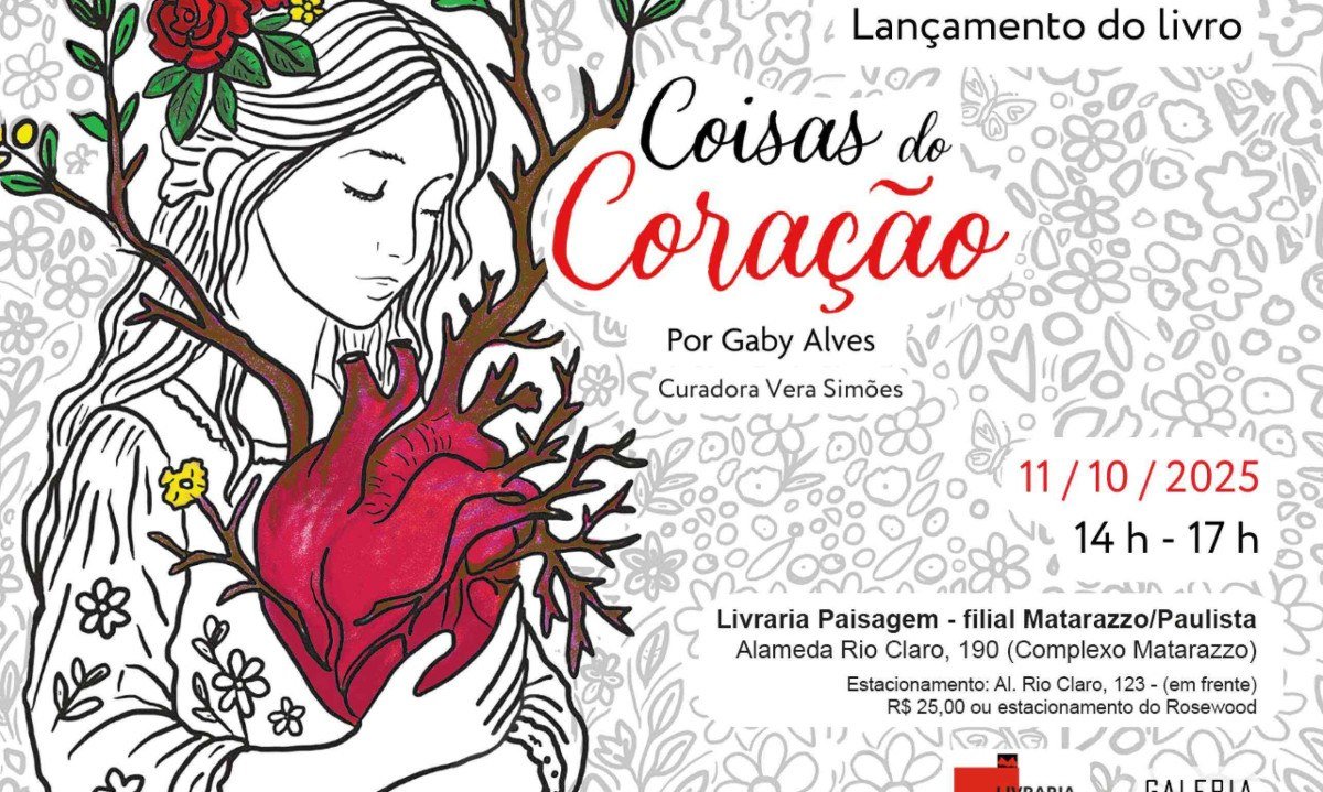 A artista visual Gaby Alves lança seu novo livro “Coisas do Coração” no dia 11 de outubro de 2025 (sábado), das 14h às 17h, na Livraria Paisagem, localizada no Complexo Matarazzo. O evento contará com a curadoria de Vera Simões.
