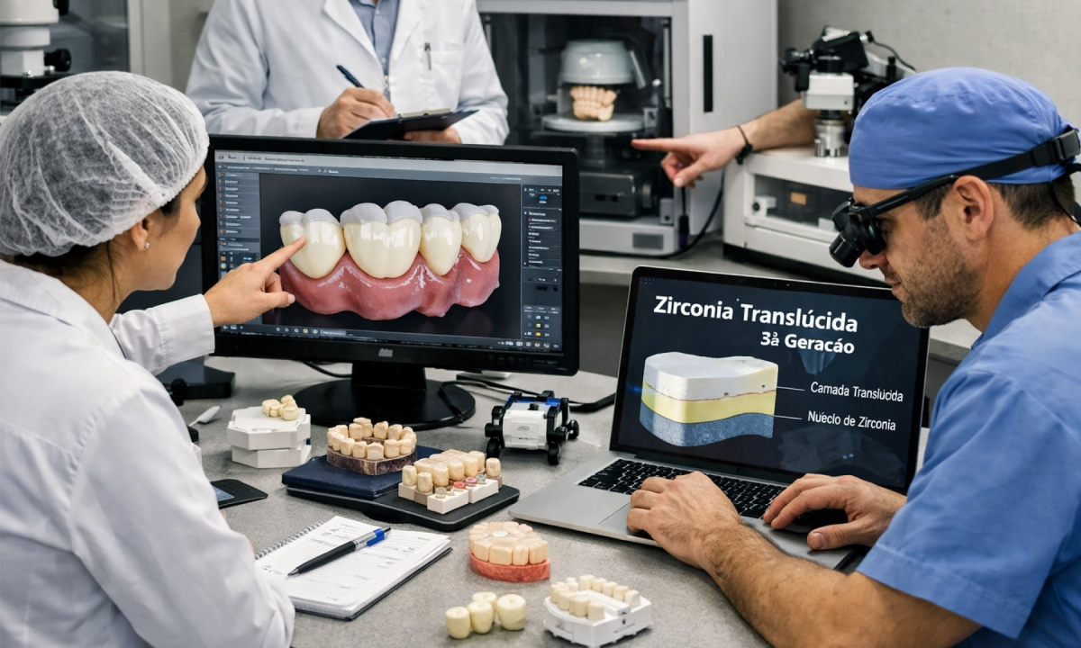 A incorporação de materiais cerâmicos avançados tem demandado conhecimento técnico específico. Informações da Dental Cremer indicam que o dióxido de zircônio apresenta excelente resistência mecânica e biocompatibilidade. O material permite confecção de próteses com alta resistência ao desgaste e à compressão, suportando forças mastigatórias. A zircônia translúcida possibilita fabricação de próteses com características similares à dentição natural.