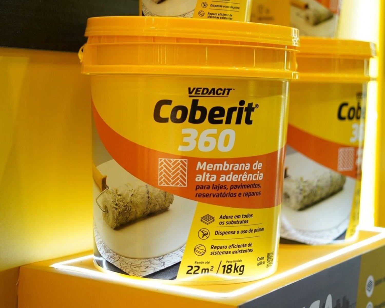 Coberit 360 é a primeira membrana impermeabilizante isenta de solventes que adere a diferentes tipos de substratos sem a necessidade de primer; produto pode ser aplicado sobre concreto, metal, fibrocimento, estruturas mistas e sistemas preexistentes íntegros, como mantas asfálticas e argamassas poliméricas, sem a necessidade de remoção da camada anterior ou geração de resíduos.