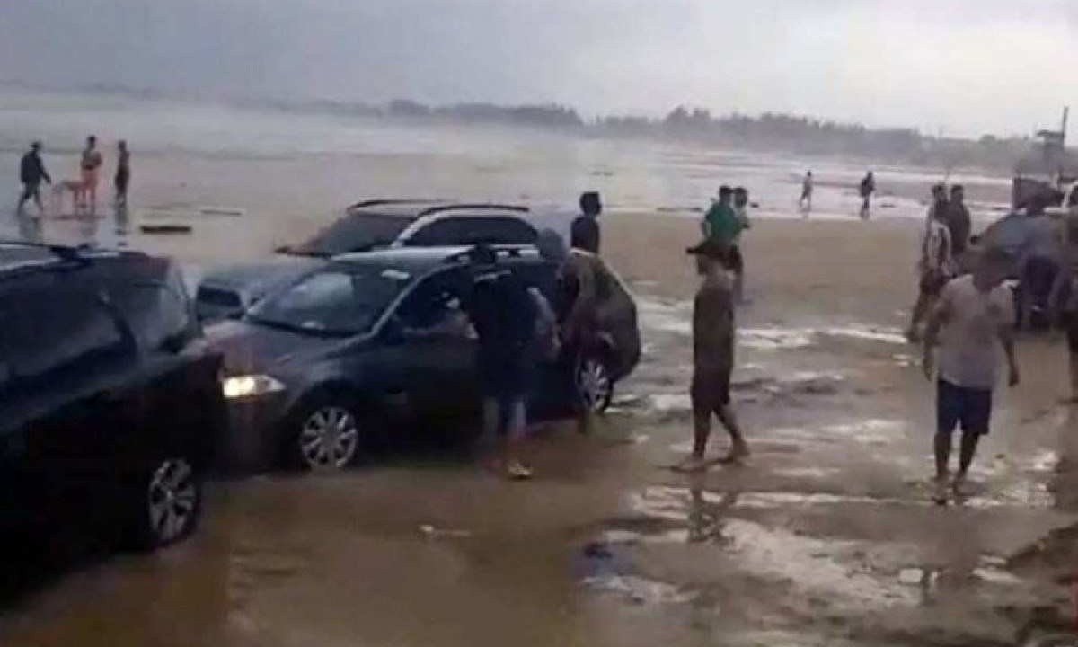 Tsunami atinge litoral Sul de Santa Catarina e arrasta carros