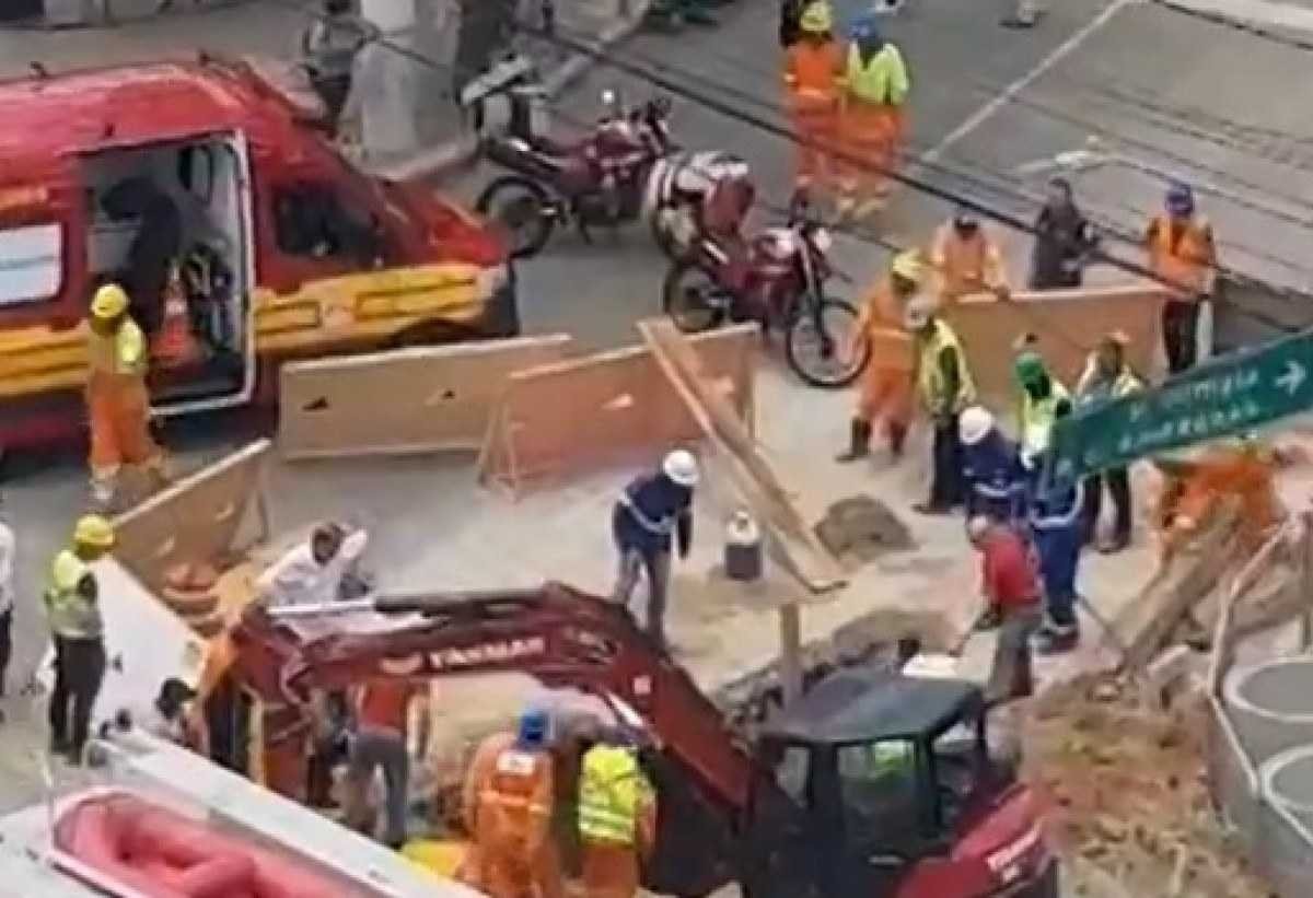 Segundo o Corpo de Bombeiros, a vítima é um funcionário da obra que caiu em um buraco.