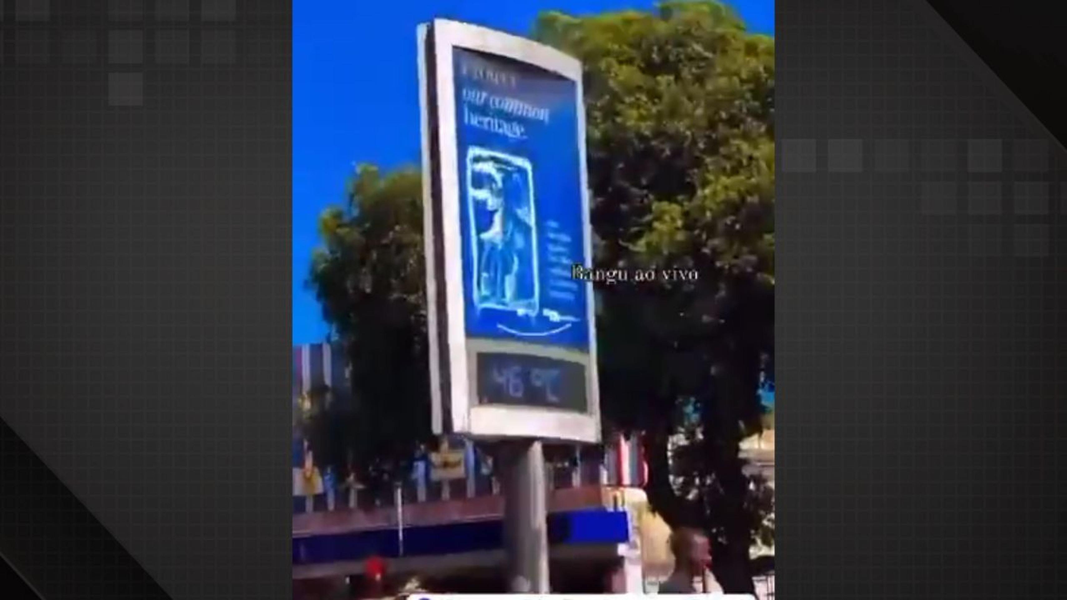 Nas imagens, registradas por uma pessoa no local, é possível ver que os termômetros registram surpreendentes 46° C.
