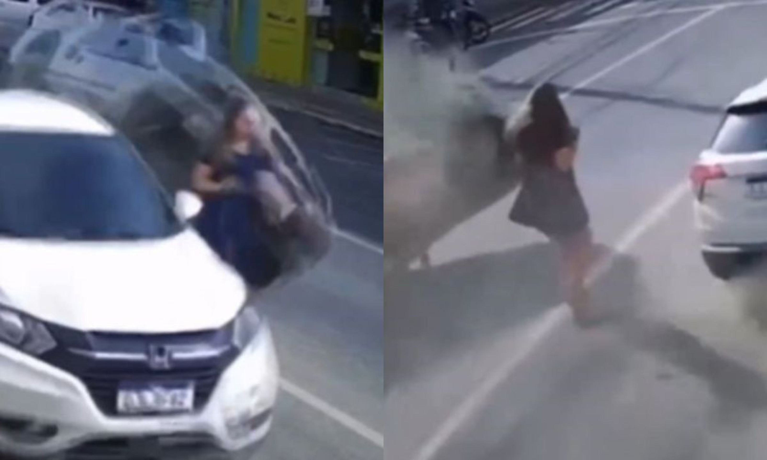 Ao mesmo tempo, uma mulher andava na rua, próximo ao veículo Honda, e quase foi atingida. Segundo a Polícia Militar de Santa Catarina (PMSC), ela não ficou ferida.