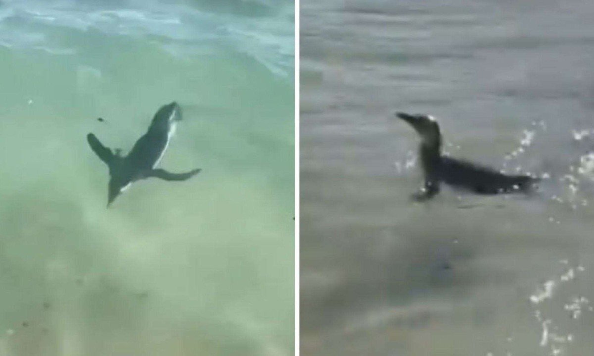 Pinguim nadando em praia do Rio de Janeiro crédito: Reprodução / redes sociais