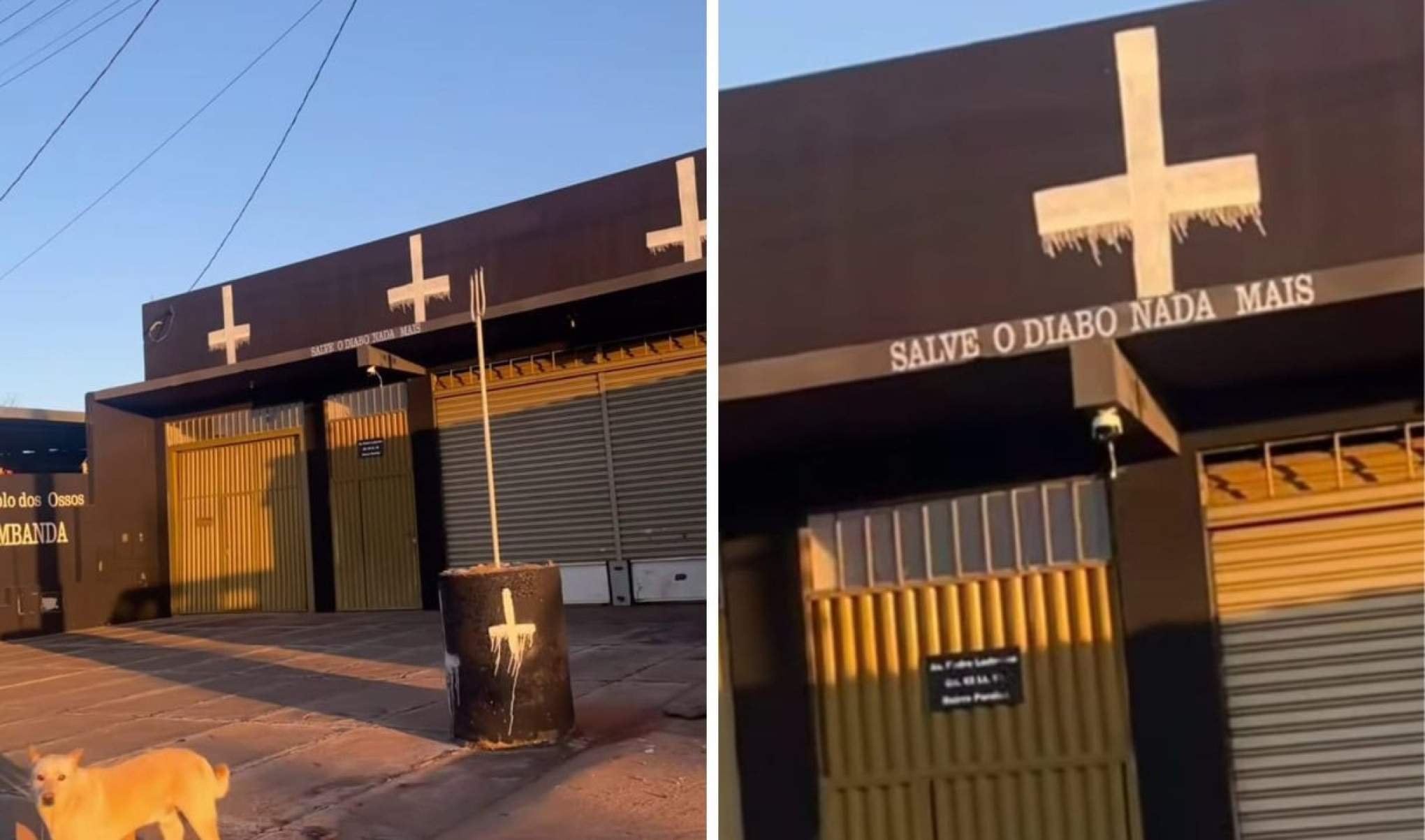 Um templo de Quimbanda em Anápolis (GO) tem gerado forte repercussão nas redes sociais nos últimos dias.Tudo isso graças à fachada do local, chamado Templo dos Ossos, que exibe a frase “Salve o Diabo e nada mais” e cruzes viradas de ponta-cabeça — símbolos que despertaram reações diversas, da curiosidade à intolerância religiosa. Além de comentários nas redes sociais, o local já foi alvo de vandalismo.