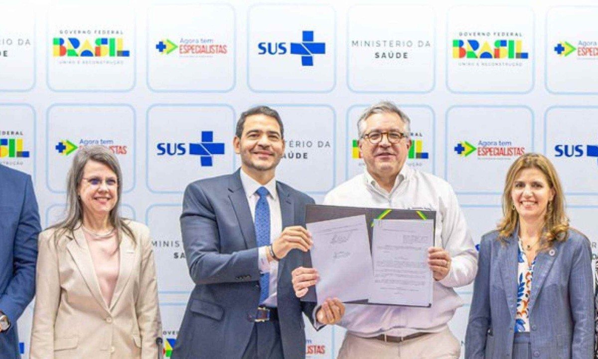 A portaria que viabiliza a troca de dívida de ressarcimento ao SUS por atendimento foi apresentada, na segunda-feira (28/7), pelo ministro da Saúde, Alexandre Padilha, pelo advogado-geral da União, Jorge Messias, e pela presidente da Agência Nacional de Saúde Suplementar (ANS), Carla de Figueiredo Soares. São ações do Agora Tem Especialistas voltadas à mobilização da estrutura de saúde privada para aumentar a capacidade de atendimento da rede pública. Para isso, o governo federal possibilitará aos planos de saúde converterem em serviços especializados as dívidas que têm com o SUS. Elas ocorrem quando não são ressarcidos valores referentes a procedimentos realizados pela rede pública e não pelos planos contratados.