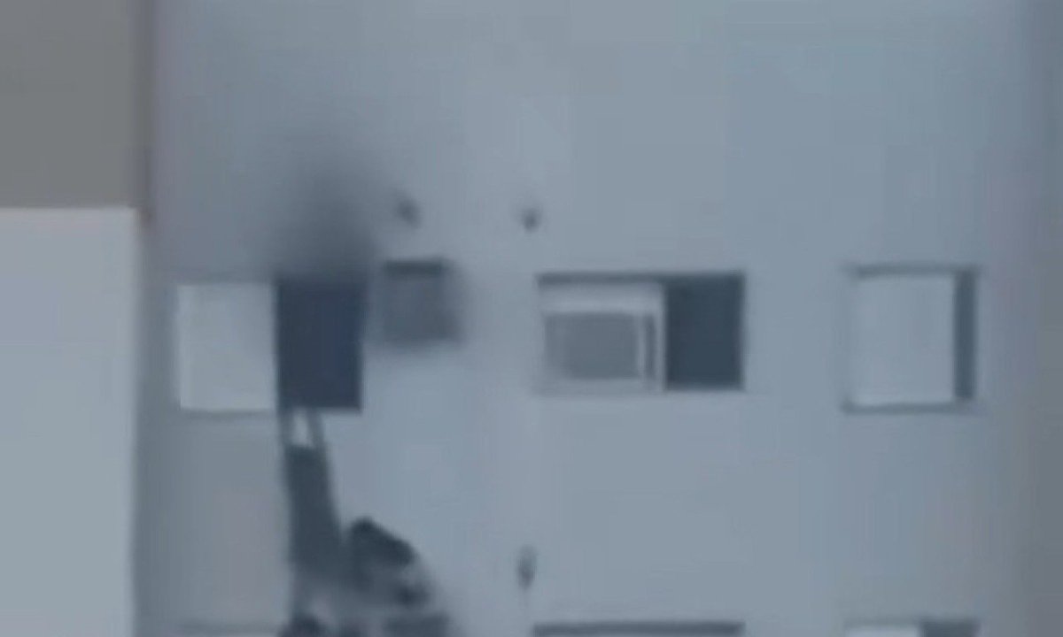 Mulher se pendura fora de prédio para ajudar familiares a fugir de fogo