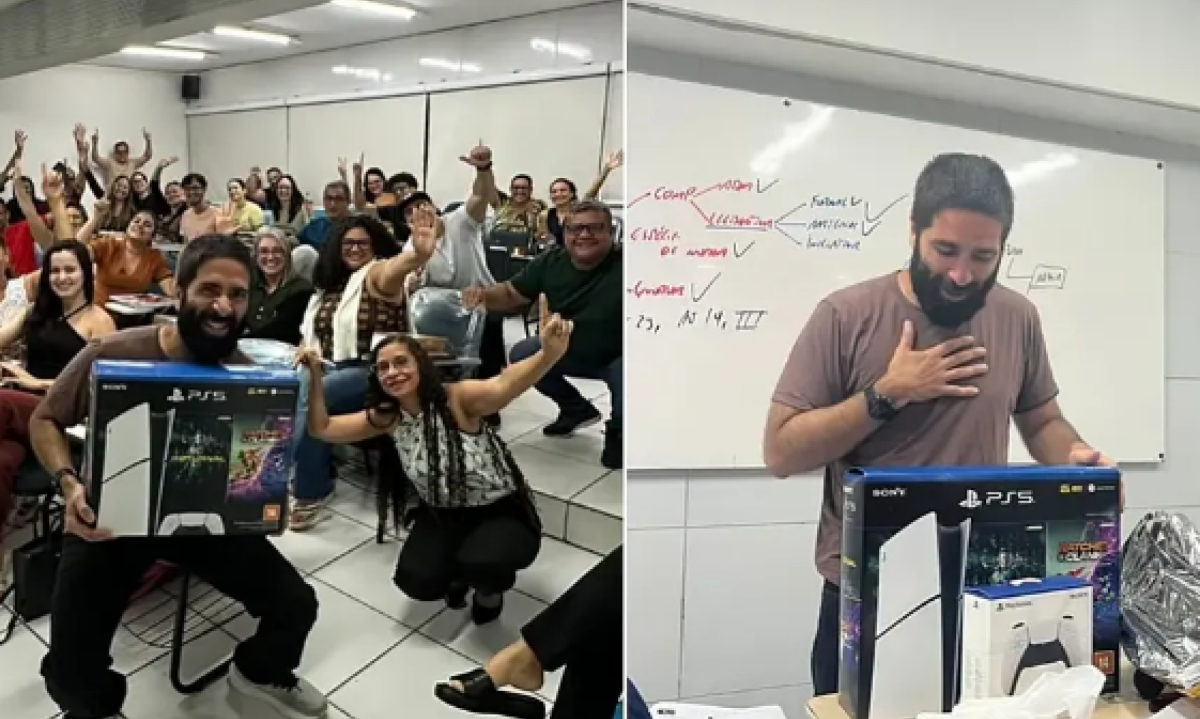 De acordo com ele, tudo aconteceu graças a uma brincadeira feita por ele em sala de aula. "Eu sempre brincava com os alunos, que eu precisava 'renovar meu contrato' para que fosse possível adquirir um PS5. Mas, para isso, eles precisavam passar (na prova)", explicou.