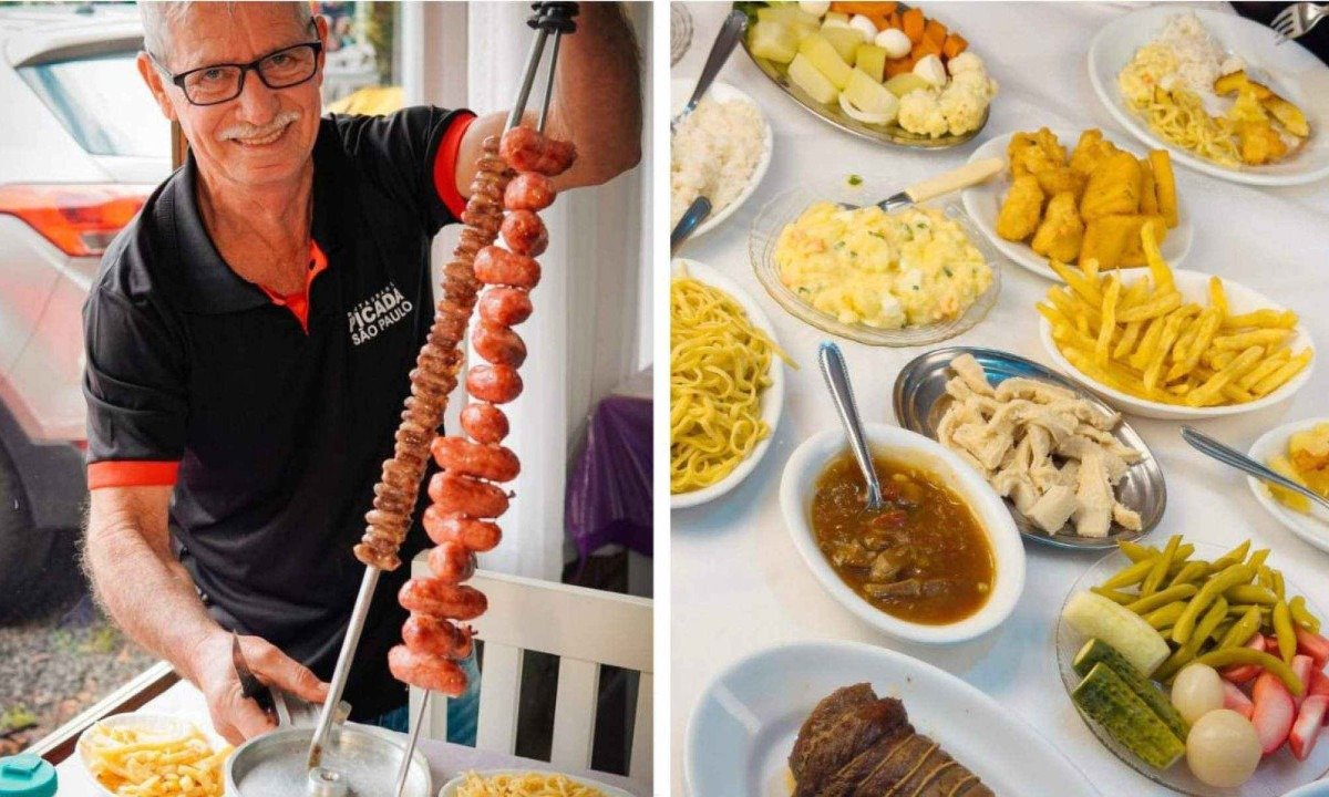 Por volta das 11h45, quando cerca de 80 pessoas já estavam almoçando, a luz acabou de repente. Sem energia, equipamentos como churrasqueiras rotativas e fritadeiras elétricas pararam de funcionar. Mesmo assim, a equipe seguiu servindo, improvisando o preparo manual e mantendo o atendimento.