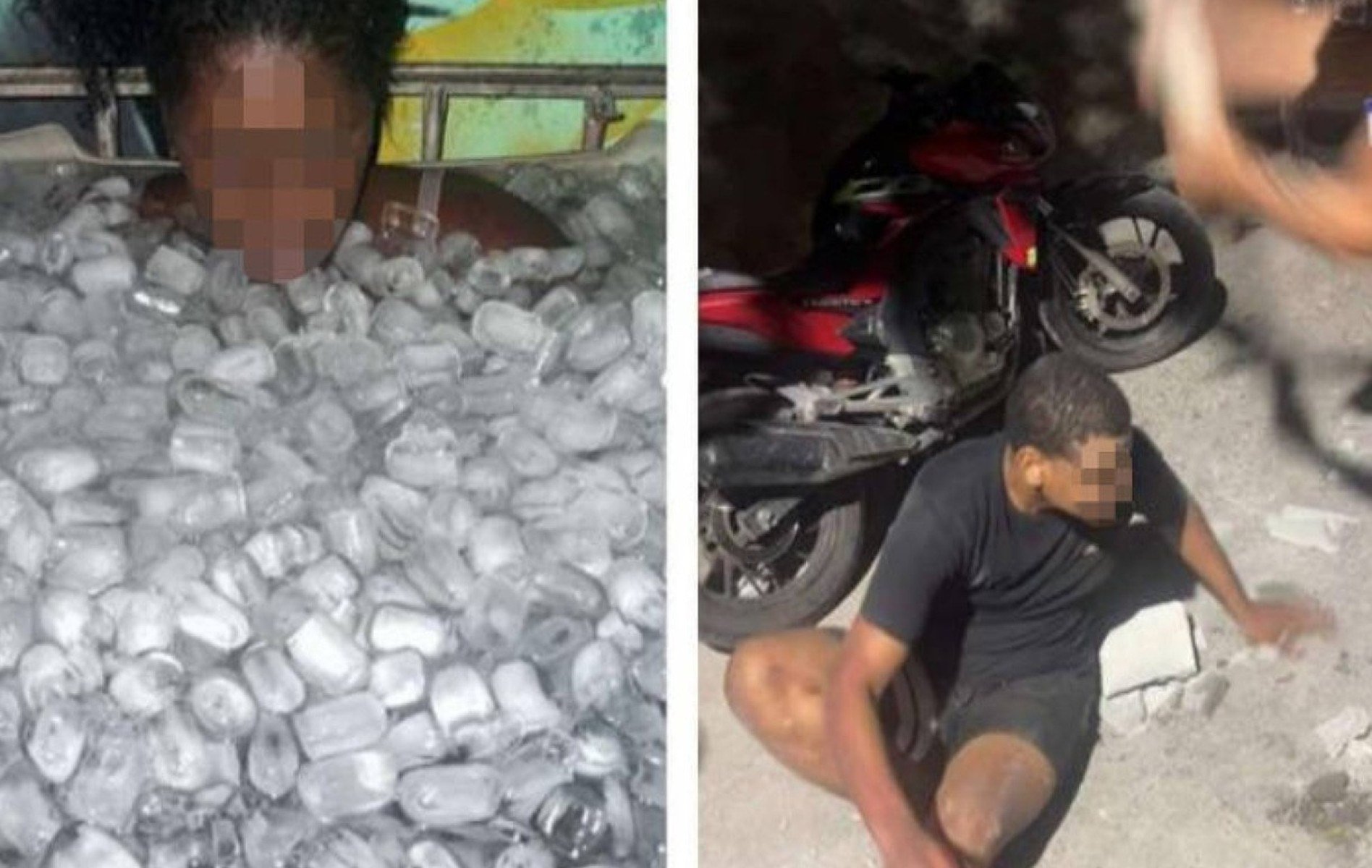 Uma das imagens obtidas pelos investigadores no arquivo de celular dele mostra uma mulher imersa em uma banheira de gelo com a legenda "Pra brigona que gosta de arrumar confusão no baile paizão não quer bater em morador aí a melhor forma será essa [sic]".
