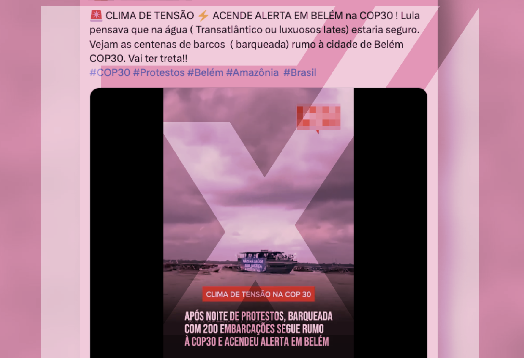 O conteúdo verificado aqui aproveita o momento da COP30 para espalhar que Lula enfrentaria problemas graves no evento, que centenas de barcos invadiriam Belém, o que, como afirmado acima, não é verdade. Ao fazer isso, o perfil tenta acirrar a divisão política, como mostram comentários como “Tem todo meu apoio, pra cima desse desgoverno” e “Isso, mostre ao mundo a verdade”.