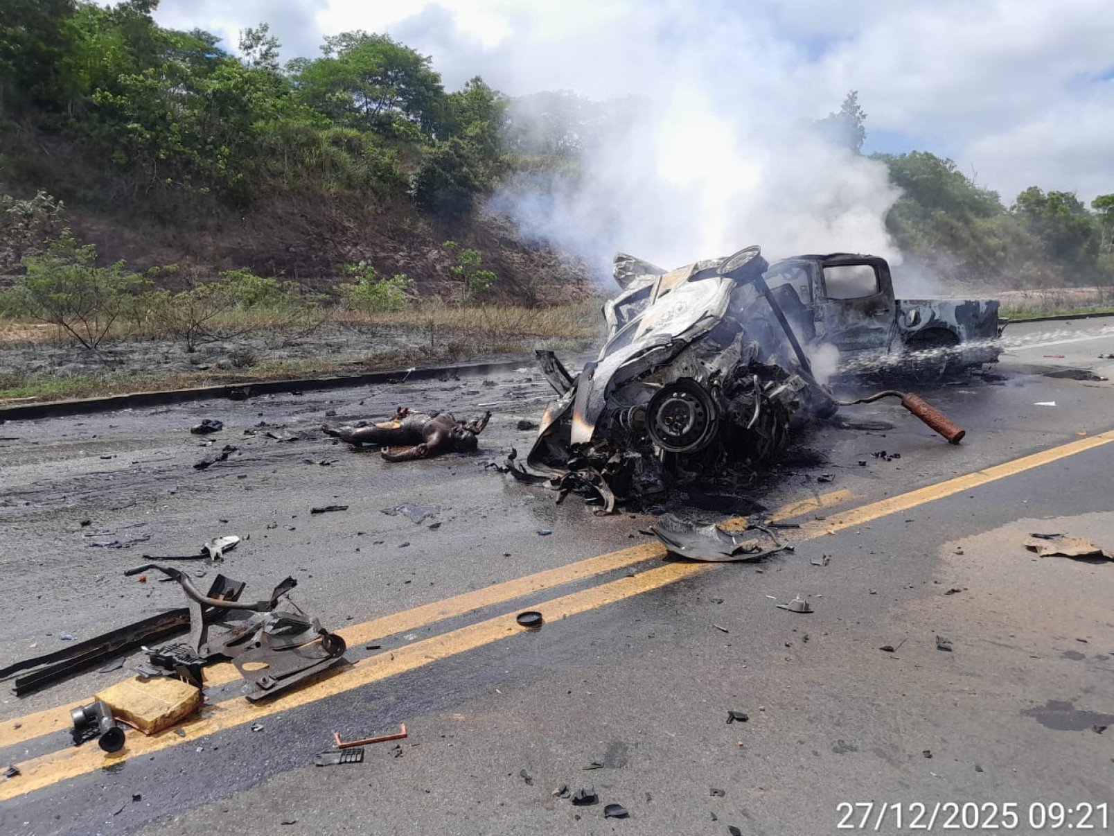 Uma colisão frontal entre dois veículos na BR-101, na altura do Km 953, em Mucuri, no Sul da Bahia, provocou a morte de 11 pessoas, de acordo com a Polícia Rodoviária Federal (PRF). Após a colisão, que aconteceu na manhã deste sábado (27/12), os automóveis pegaram fogo.