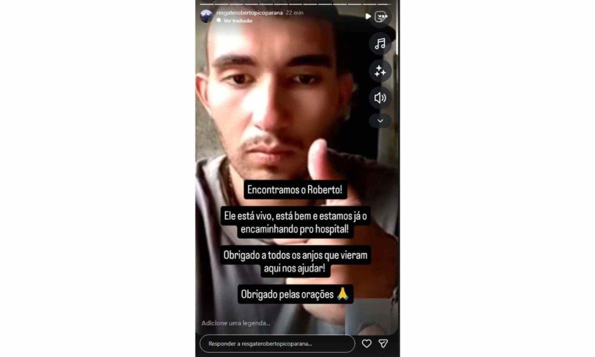 A família também confirmou a informação por meio de um perfil criado nas redes sociais para divulgar atualizações sobre o caso. “Vivo e bem”, publicaram os parentes às 10h50, agradecendo o apoio recebido durante os dias de busca. “Obrigado a todos os anjos que vieram aqui nos ajudar. Obrigada pelas orações”, escreveram.