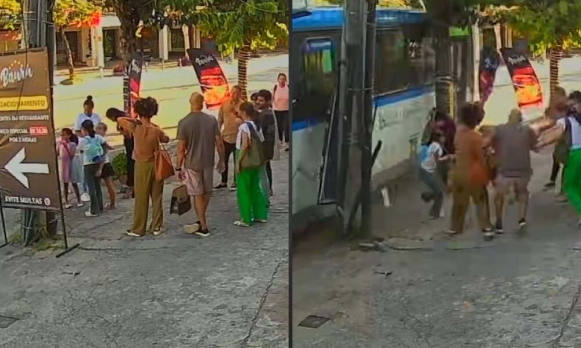 Vídeo: motorista perde o controle do ônibus e atropela família na calçada