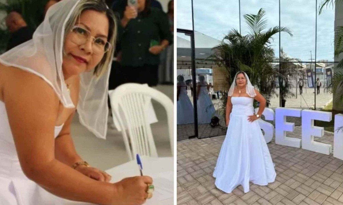 A pedagoga Nayra Saldanha, de 50 anos, chamou a atenção ao tomar posse em um concurso público para professora da educação básica da rede estadual de Roraima vestida de noiva. A cerimônia foi realizada em janeiro, na Secretaria de Educação de Roraima (Seed), em Boa Vista. As imagens viralizaram nas redes sociais.